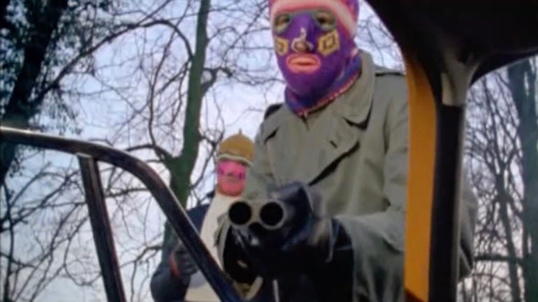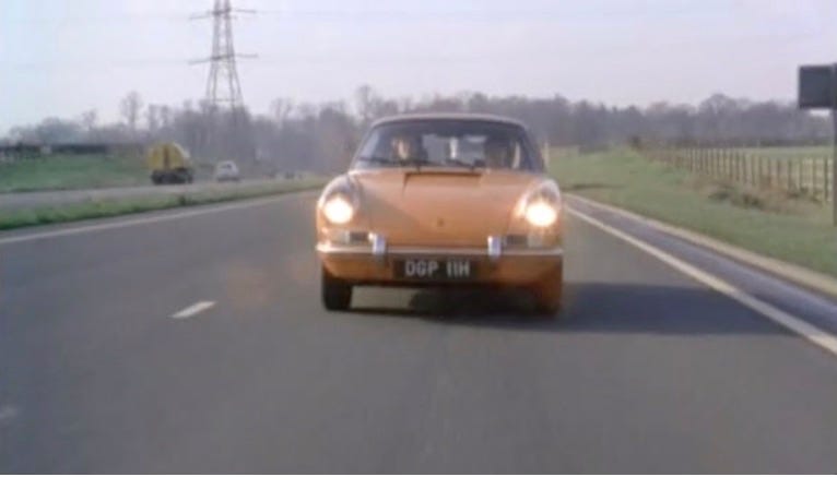 And it is this vanished world, I think, which is captured so beautifully in Chalk and Cheese, an episode of The Sweeney from 1975 (Series 2, episode 1). An ‘Oxbridge Golden Boy’ takes up armed robbery: “Giles Nunn (Shane Briant) and Carrie Selhurst (Lesley-Anne Down) are an upper crust couple who, partly for kicks and for the profits, commit highway robbery in lonely country lanes…” Actually, the blurb gets this wrong, as Carrie’s really more of an accomplice in crime — but there’s nothing like a bit of good, old-fashioned armed robbery, with sawn-off shotgun, a stocking over your head and a getaway Jaguar Mark 2 — or in the case of Carrie and Giles, a turmeric-sprayed Porsche.