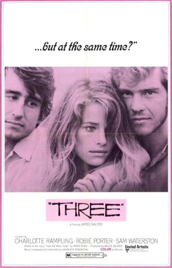 Let’s stick with our ‘France in the Sixties’ theme and turn to Three (1969), directed by James Salter (the American writer), and based on the Irwin Shaw short story, Then We Were Three (1955), and starring a young Charlotte Rampling and Sam Waterston. I watched it last night and loved it, and despite negative criticism online, I think it’s a wonderful film. Detached, visual, elegant and spare.