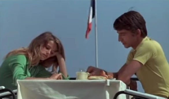 Two American ‘college’ boys (in Brooks Brothers shirts) are on a Grand Tour of France and Italy. Taylor (Sam Waterston) and Bert (Robie Porter). They’re both in their very early twenties, in that in-between bit between University and Law School, or the equivalent. And they’re from well-off, comfortable backgrounds, or at least the more refined Taylor is. Bert’s the more confident one, with the All-American good looks: blond, tanned, growing a beard; wears a pendant. Taylor’s not as good-looking, but he makes up for it with his sensitivity and reserve, which, for the purposes of the film, makes him, apparently, more attractive to women, or at least according to Bert — although from memory, in my early 20s, I don’t remember it being this way. It was always the arrogant, super-confident tosser, the boy with the Brideshead quiff, who got the girl.